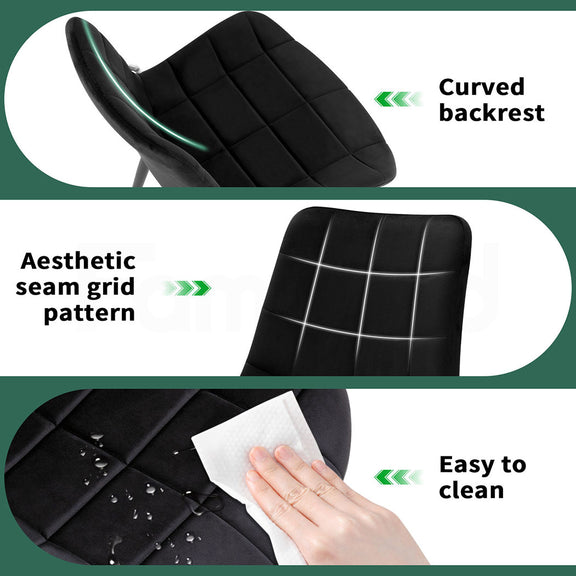 ---【Easy to Maintain】The seat and backrest are upholstered in high-quality Velvet, making these side chairs easy to clean with a damp cloth. The anti-dirt surface reduces maintenance efforts, ensuring the upholstered dining chairs stay in great condition.