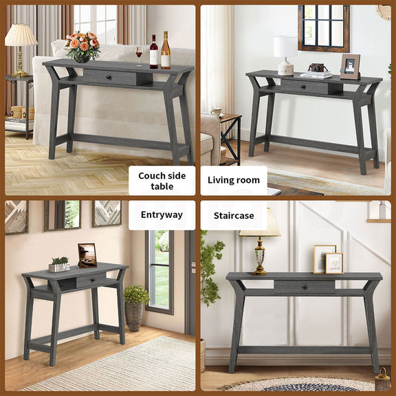 --【Spacious Storage Options】This console table features one open shelf and a large wooden drawer beneath the tabletop, offering ample space to organize and store books, vases, DVDs, storage boxes, and more. The open shelf design keeps your essentials accessible while maintaining a tidy and organized surface.