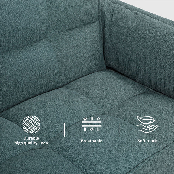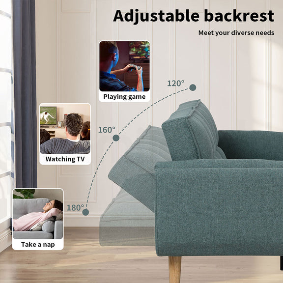 ---【Premium Materials】Crafted from breathable, soft-touch linen fabric, this futon sofa combines durability with comfort. The seat cushion, filled with high-resilience sponge, provides long-lasting softness, while the sturdy wood legs add stability and support up to 300kg.