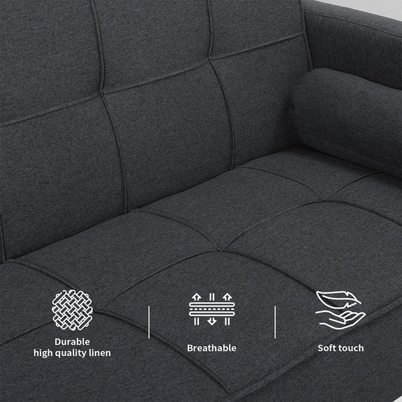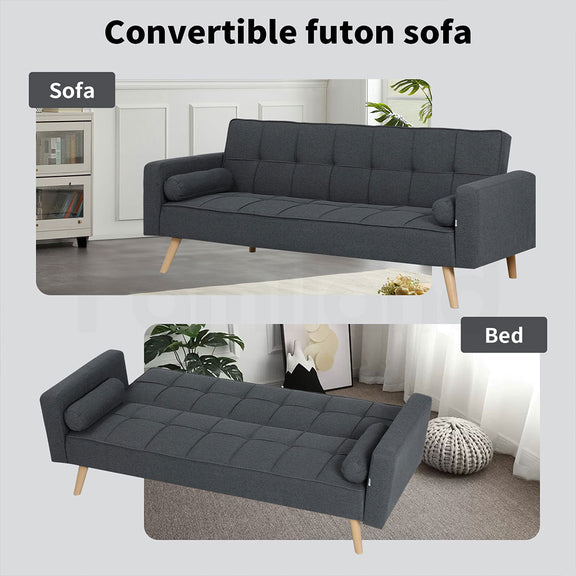 Familand 3 Seater Convertible Futon Sofa Bed, Linen Loveseat Sofa,Grey