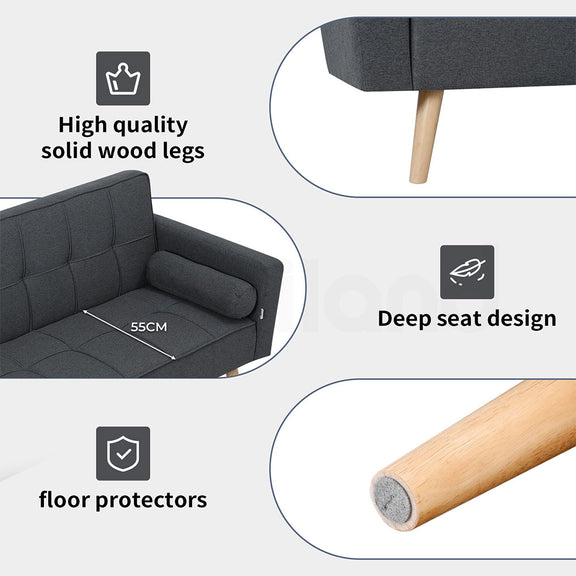 ---【Premium Materials】Crafted from breathable, soft-touch linen fabric, this futon sofa is built for durability. The high-resilience sponge seat cushion provides lasting comfort, while sturdy wooden legs offer stability and support up to 220kg.