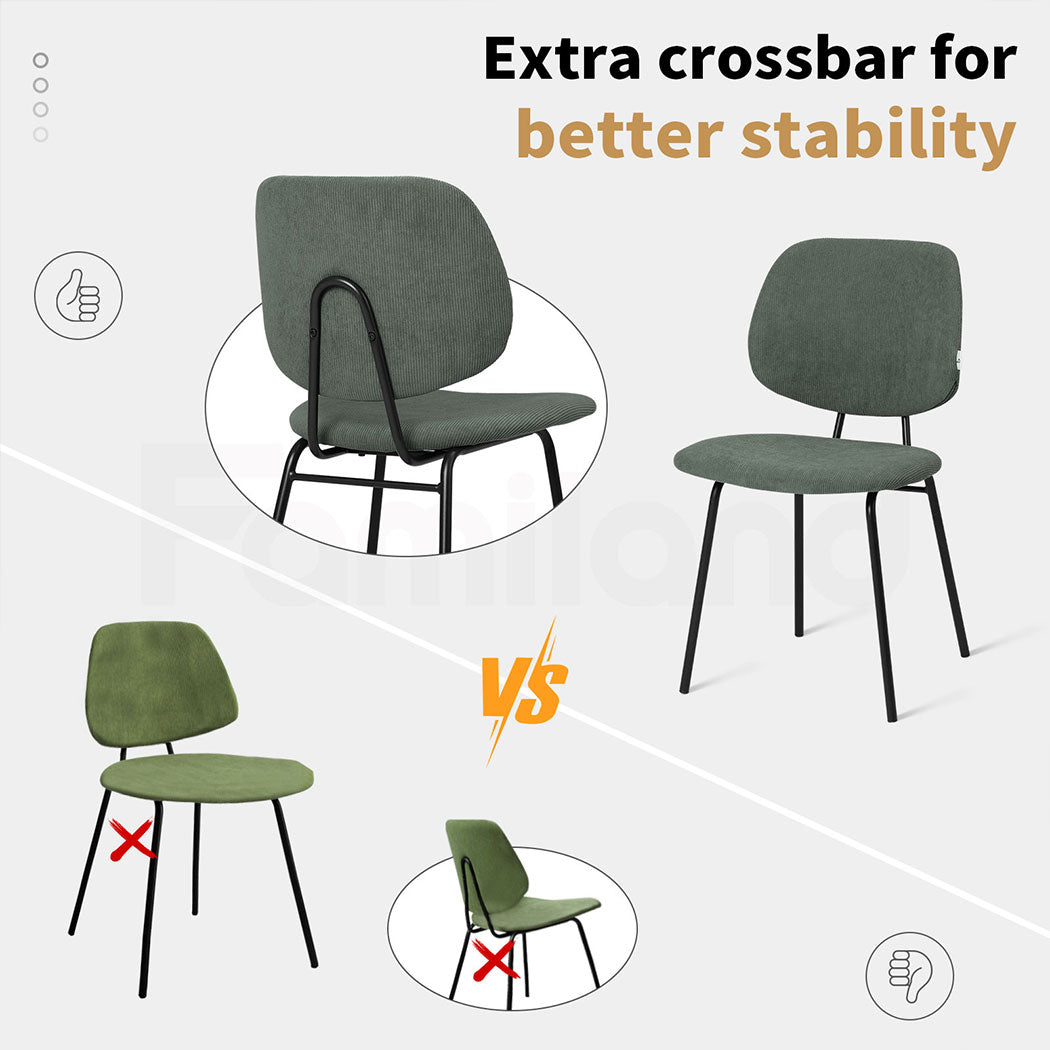 FAMILAND DINING CHAIRS SET OF 2 -- Enhance your dining environment with our newly released dining chairs from Familand. Presenting the utmost in comfort and style - our Corduroy kitchen dining chairs featuring sleek metal legs. Meticulously designed to seamlessly blend into any dining area, this chair exudes classic , elegant and modern expression to elevate your dining experience.