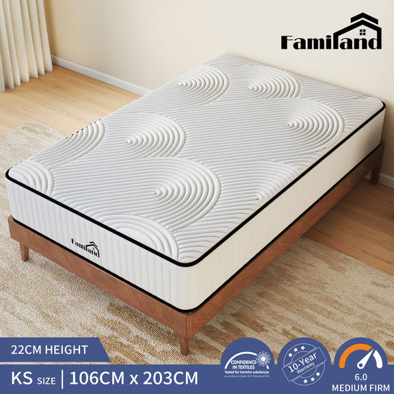 FAMILAND MATTRESS---If you're looking for an exceptional mattress that delivers both customized support and comfort, the Familand Pocket Spring Hybrid Mattress is your ideal choice. This 6.0 Medium Firm Bed-in-a-Box strikes the perfect balance, offering firmness without being too rigid, providing superior spinal support.
