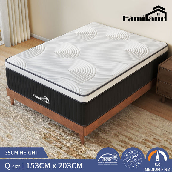 ---Kindly Reminder: The Familand mattress comes with a 10-year warranty. We recommend allowing 48 hours for the mattress to regain its full shape. Please take care when unwrapping, as it may expand rapidly. For any issues or concerns, our customer support team is available to assist you within 24 hours.