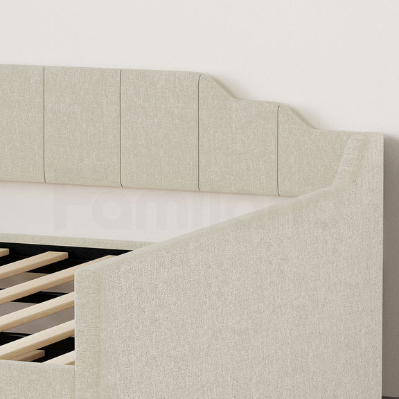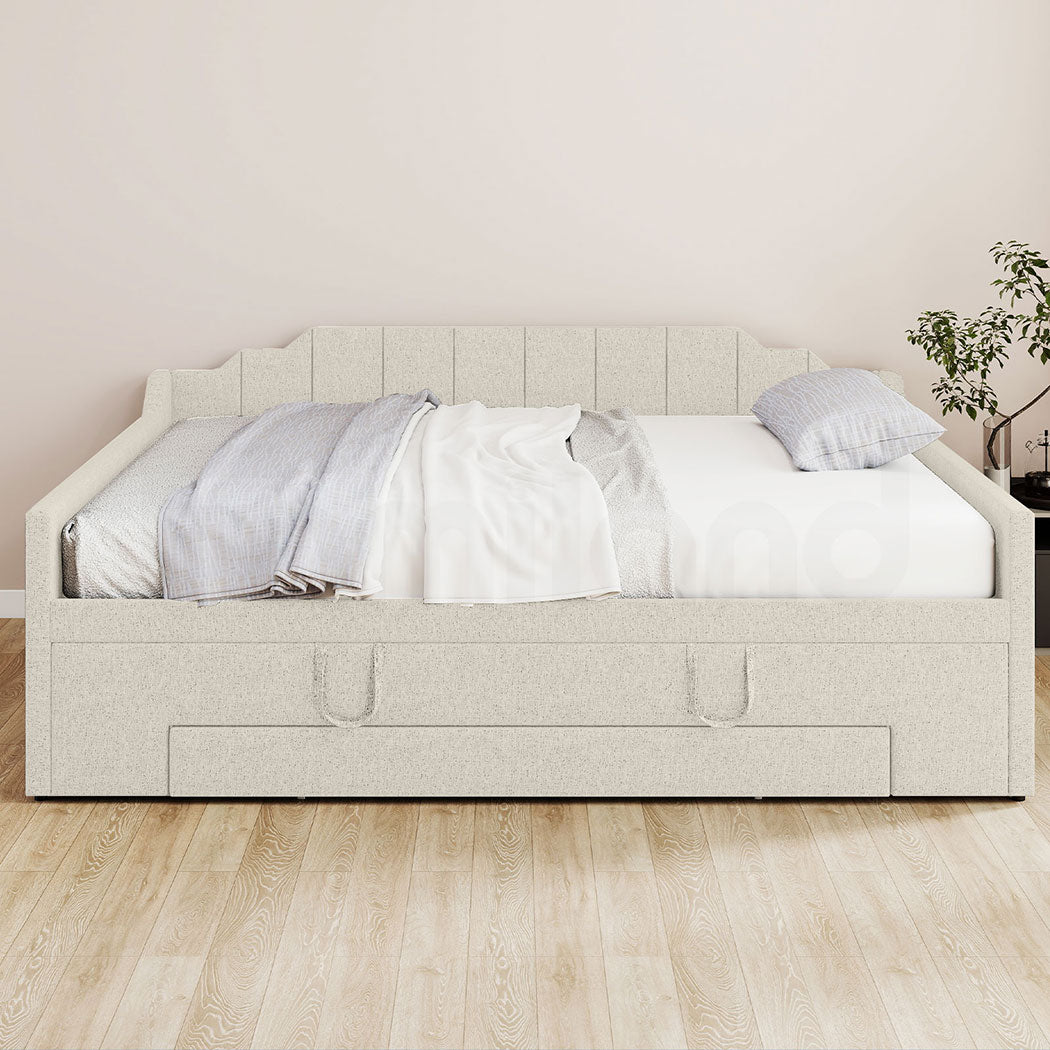 Familand Queen Size Daybed with Trundle Bed & Storage Drawer in Cream