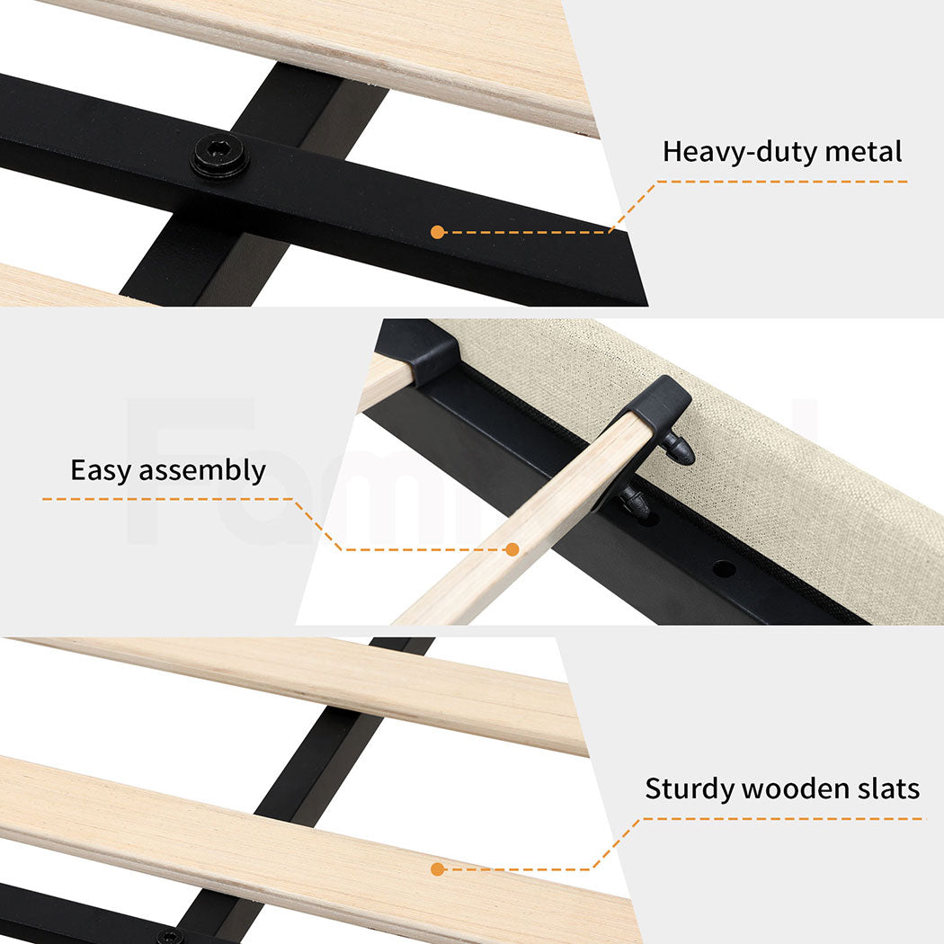 --【Sturdy & Durable Structure】The Familand platform bed frame queen size is constructed with high-quality steel and solid wood slats, supported by four adjustable feet and ten dense slats, providing strong support for up to 250kg. This solid structure evenly distributes weight to prevent mattress sagging, ensuring a comfortable and quiet night’s sleep.