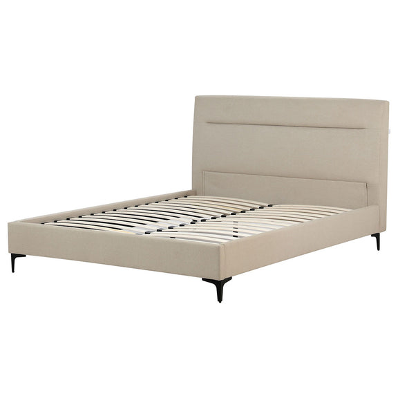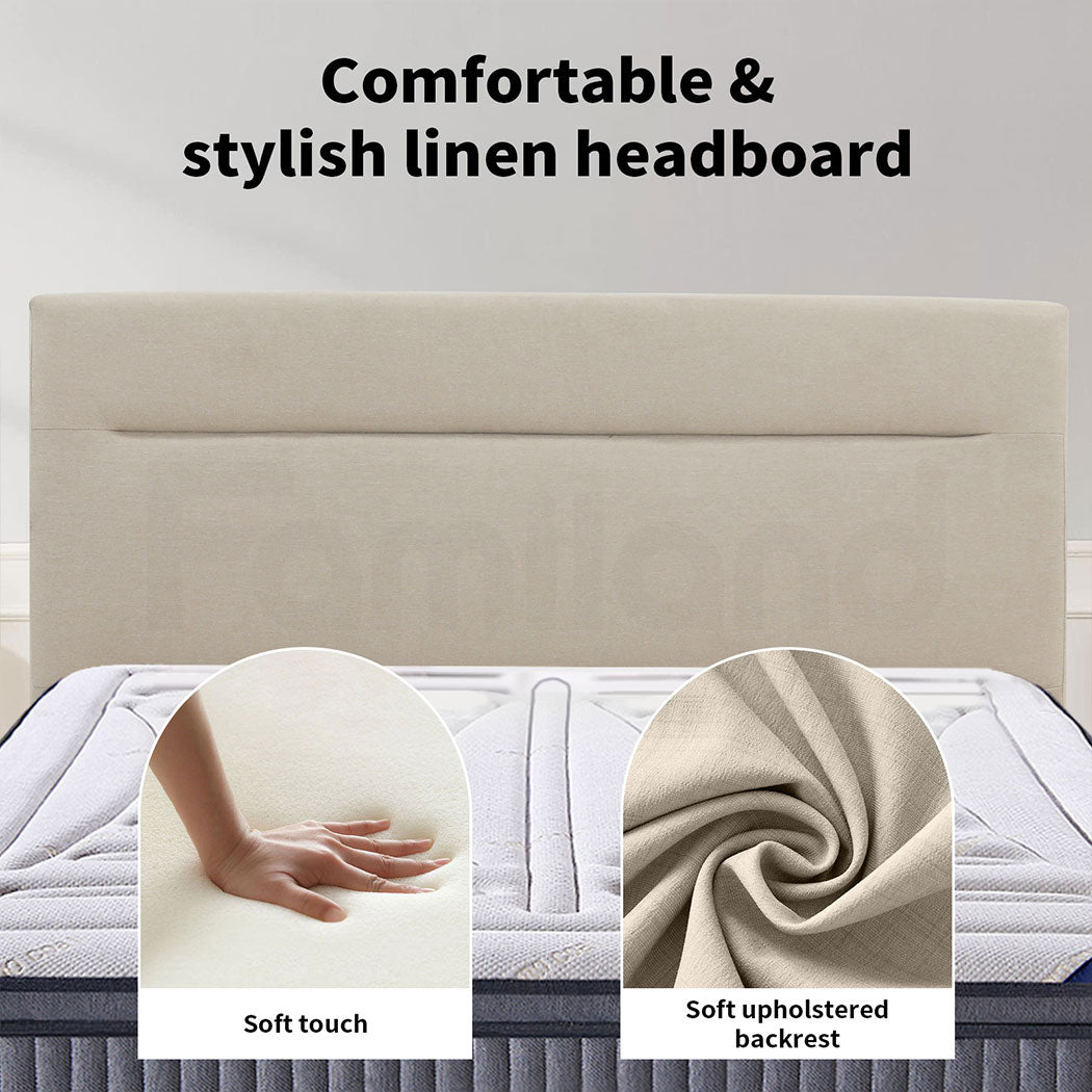 Familand Queen Size Platform Bed Frame Upholstered Headboard in Cream