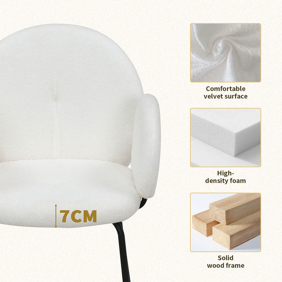 FAMILAND DINING CHAIRS SET OF 2 ---- Elevate your space with the FAMILAND dining chair set of 2. With their chic cloud-shaped backrest and arms paired with sleek black metal legs, these accent velvet chairs are ideal for a range of settings. Use them as vanity chairs, dining chairs, accent chairs, side chairs, or reading chairs. They are a perfect choice for enhancing your living room, bedroom, dining room, office, or guest room.