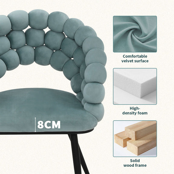 ---【Modern & Elegant Design】The tufted-ball and hollow-backrest design gives this armchair a chic, contemporary look. With its rounded, inward-closing posture that conforms to your body curves, this dining chair set of 2 offers a comfortable seating experience without fatigue, even during extended use.