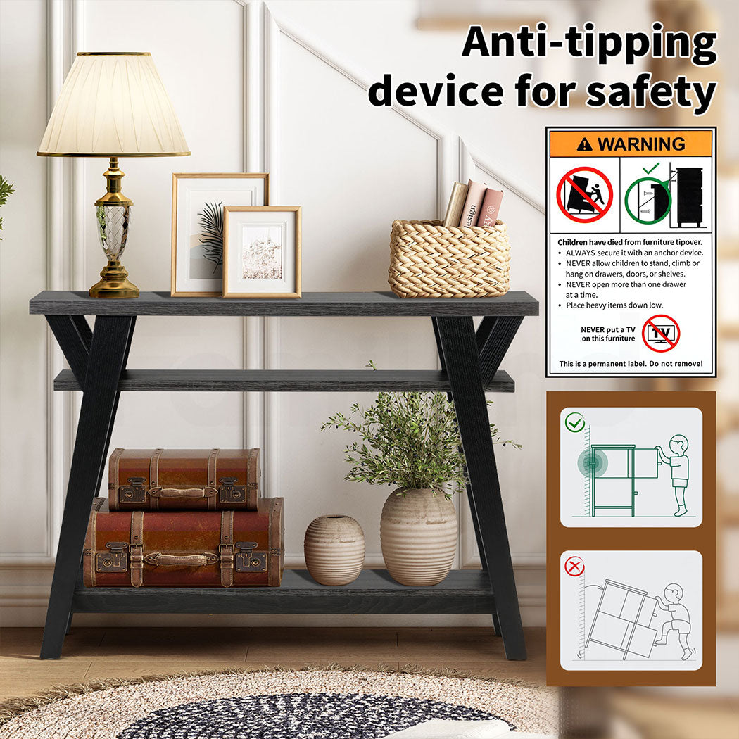 --【Ample Storage Options】 Featuring a 3-tier shelf system, this entry table offers plenty of space for your storage needs, helping to keep your space tidy while accommodating your various storage requirements. Overall dimensions: 107cm L x 39.5cm W x 76cm H.