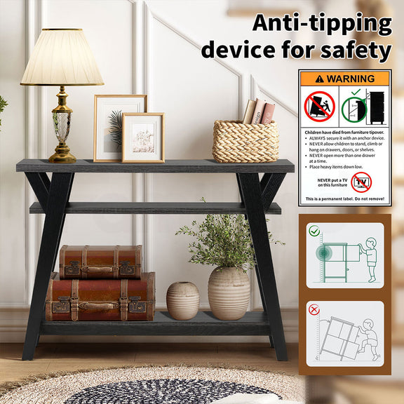 --【Safety Design Entry Table 】Equipped with an anti-tipping device, this hallway table for entryway offers enhanced safety by preventing accidents. The rounded, curved corners ensure protection against bumps, making it a great choice for homes with children.