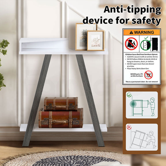 --【Entry Table Designed for safety】Equipped with an anti-tipping device, this hallway table for entryway enhances safety by preventing accidental tipping—perfect for homes with children. Additionally, four foot pads provide extra stability on uneven surfaces while protecting tile and wooden floors from scratches.