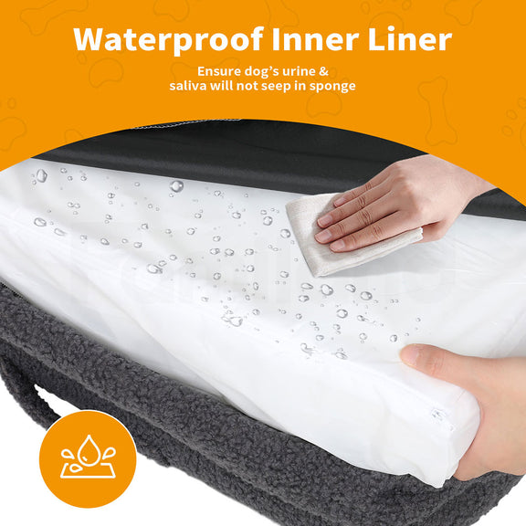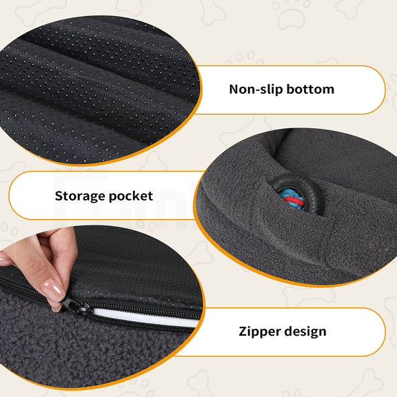 ---【Soothing Bolster Design】Enhance your rest with our bed's unique bolster design, providing a haven for comfortable snuggling. The cushioned bolster, filled with chopped foam, provides excellent head and neck support for a restful night's sleep. In addition, the base of the bed is fitted with non-slip rubber dots for added stability.