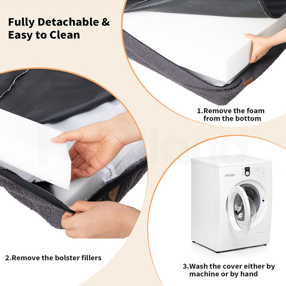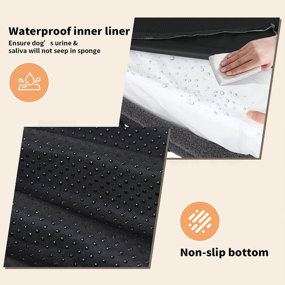 --【Comfortable & Washable Dog Bed】The waterproof inner liner prevents urine penetration, keeping the foam dry and free from mildew. The fully removable covers are machine washable, so you can keep the bed looking fresh and clean with minimal effort. Please note the inner foam is not washable.