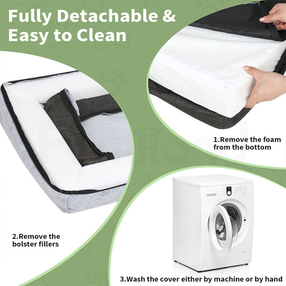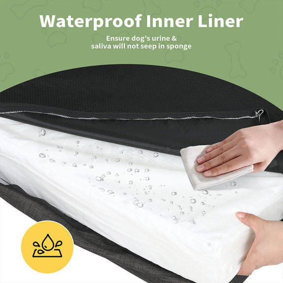 --【Comfortable & Washable Dog Bed】The waterproof inner liner prevents urine penetration, keeping the foam dry and free from mildew. The fully removable covers are machine washable, so you can keep the bed looking fresh and clean with minimal effort. Please note the inner foam is not washable.