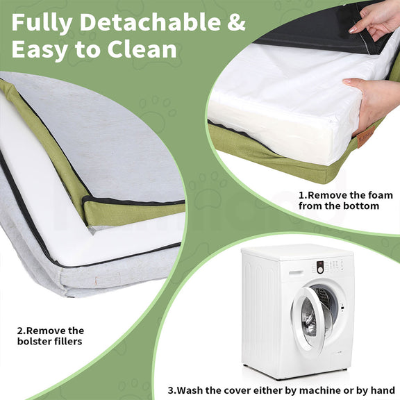 --【Comfortable & Washable Dog Bed】The waterproof inner liner prevents urine penetration, keeping the foam dry and free from mildew. The fully removable covers are machine washable, so you can keep the bed looking fresh and clean with minimal effort. Please note the inner foam is not washable.