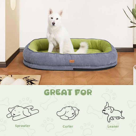 TEDI'S ORTHOPEDIC DOG BED – Send your furry friend off to dreamland with the ultimate comfort of our Orthopedic Pet Bed. Designed to gently hug your pet like a donut, it creates a calming, cozy environment that promotes relaxation. The extra-high bolsters act as plush pillows and backrests on all sides, mimicking a pet’s instinctive denning behavior to offer an added sense of security. The 4cm premium orthopedic egg memory foam sleep surface provides exceptional comfort, making it perfect for older pets or those with arthritis and joint pain.