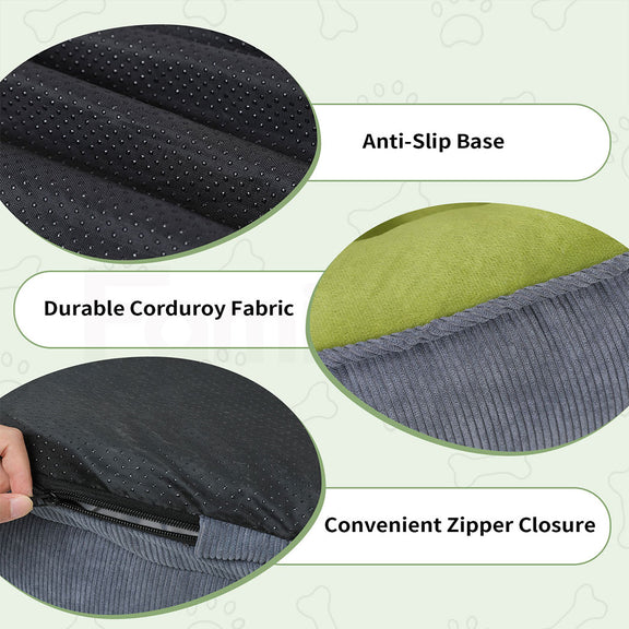 ---【Bonus Rattan Mat】Made from premium corduroy and velvet, the soft, thick fabric creates a warm and cozy spot for your pet to sleep. Additionally, the pet calming bed comes with a rattan mat to keep your pet cool and comfortable during the warmer months.