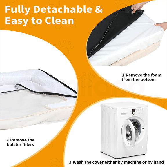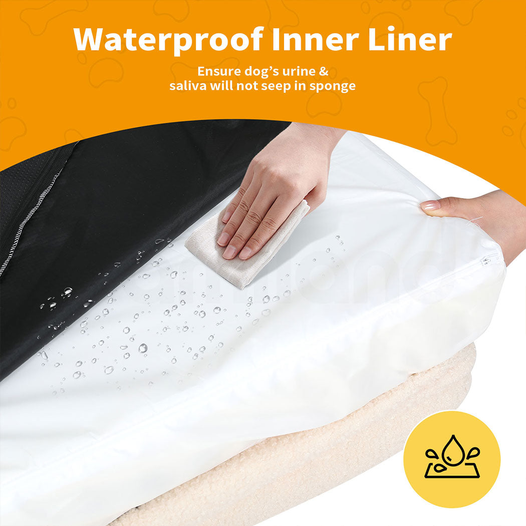 --【Comfortable & Washable Dog Bed】The waterproof inner liner prevents urine penetration, keeping the foam dry and free from mildew. The fully removable covers are machine washable, so you can keep the bed looking fresh and clean with minimal effort. Please note the inner foam is not washable.