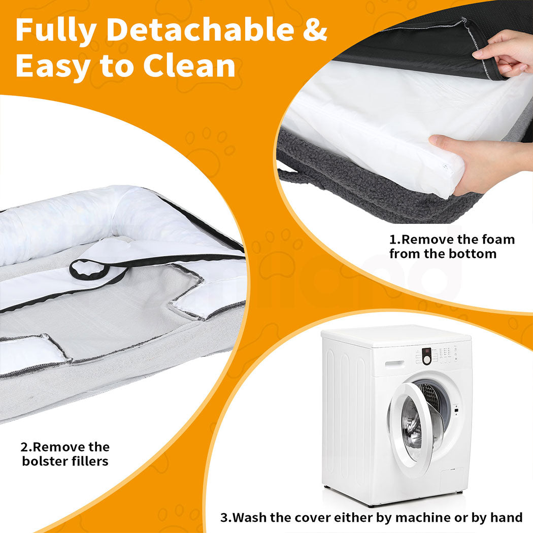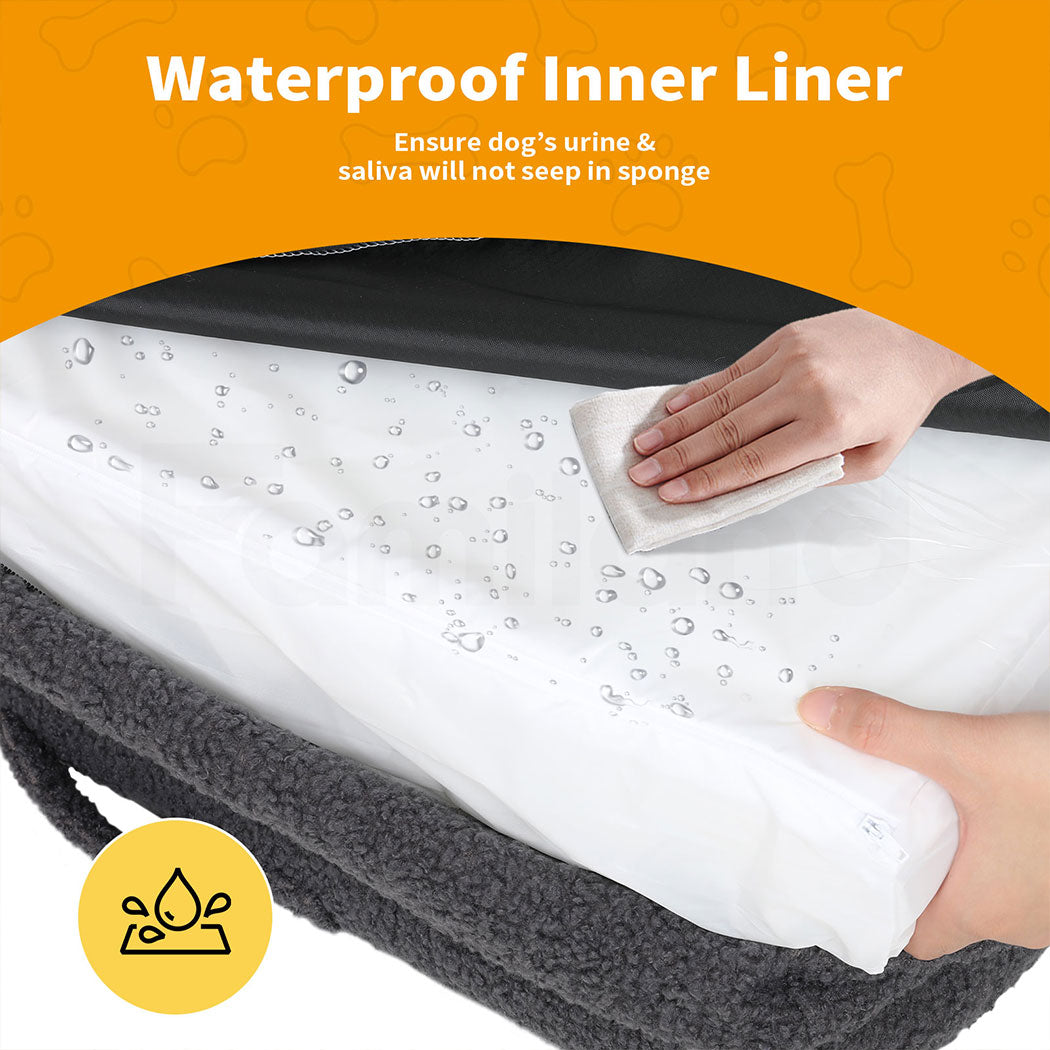 --【Comfortable & Washable Dog Bed】The waterproof inner liner prevents urine penetration, keeping the foam dry and free from mildew. The fully removable covers are machine washable, so you can keep the bed looking fresh and clean with minimal effort. Please note the inner foam is not washable.