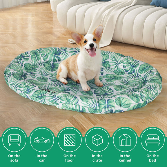 ---【Indoor and Outdoor Use】The mat’s soft PP filling, about 6-8cm thick on the edge, supports your pet’s cervical spine and provides pillow-like comfort. It can be placed directly on the floor for pets to sleep on, or used in kennels, on sofas, pet beds, car seats, and outdoors in the shade.