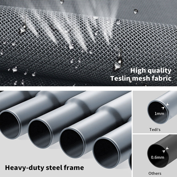 ---【Durable Steel Frame】Built with a sturdy steel frame, this pet trampoline bed offers strong stability and can support pets weighing up to 80 kg. The skid-resistant feet keep it in place, preventing unwanted movement. Available in four sizes, the pet beds are perfect for small to extra-large dogs.